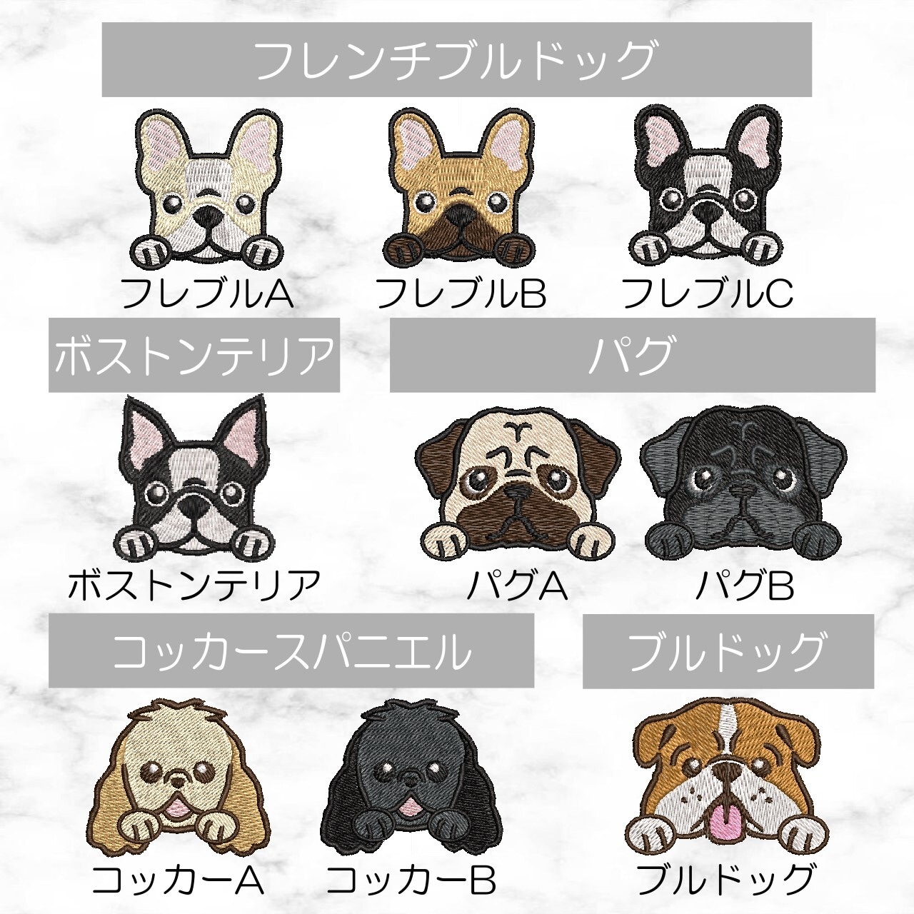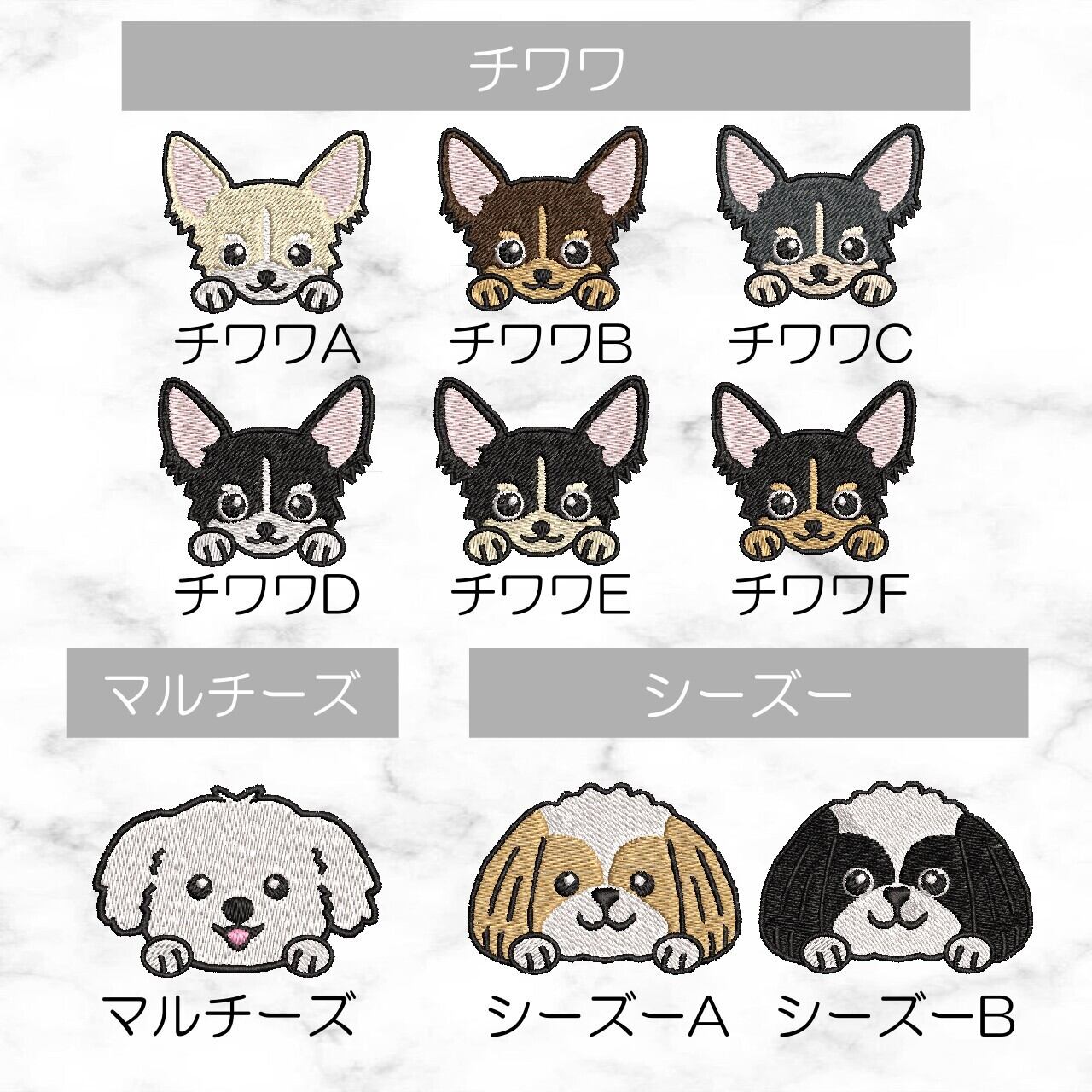 ※+800円でわんポイント刺繍の追加が出来ます。5匹以上の刺繍をご希望の場合は購入前にお問い合わせください