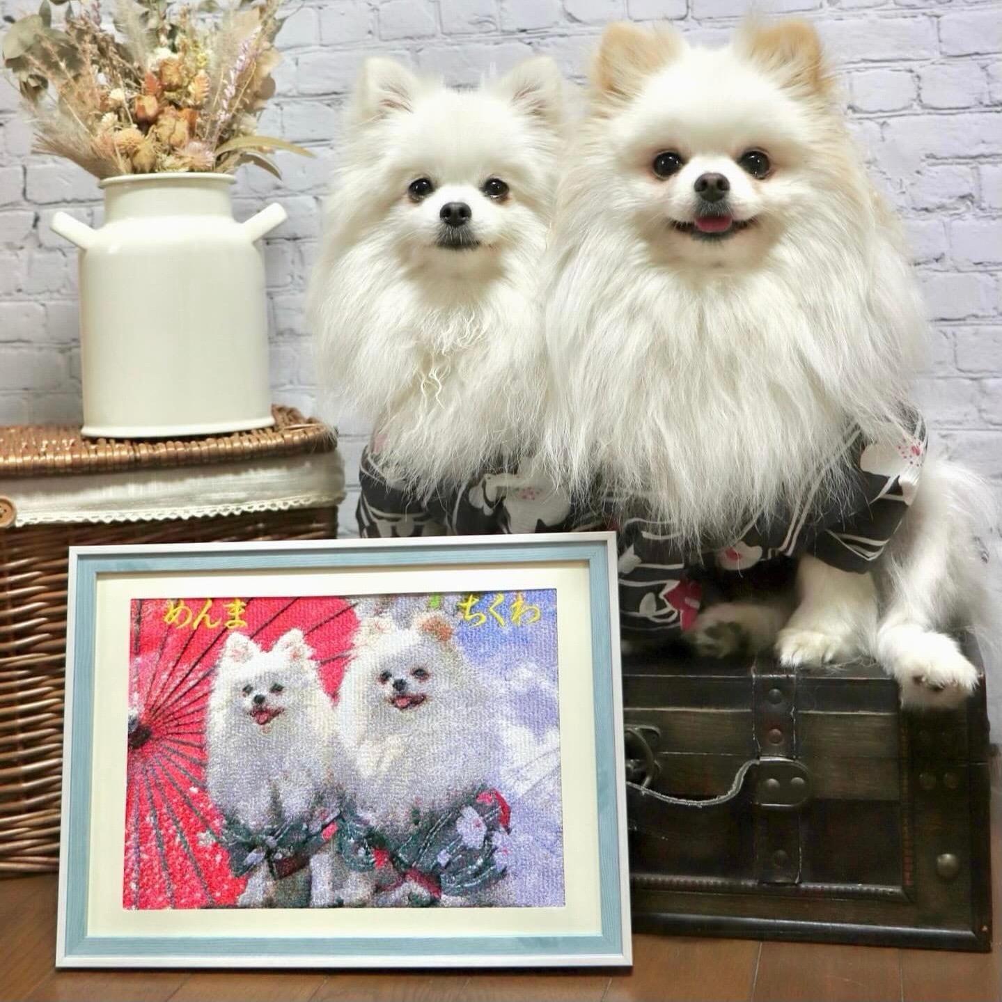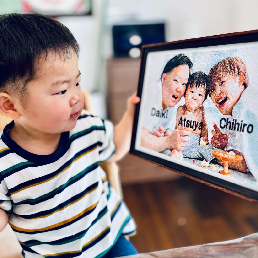 可愛いペットのベストショット、お子さんの写真、家族の思い出の写真などあなたの大切な写真を刺繍で再現いたします